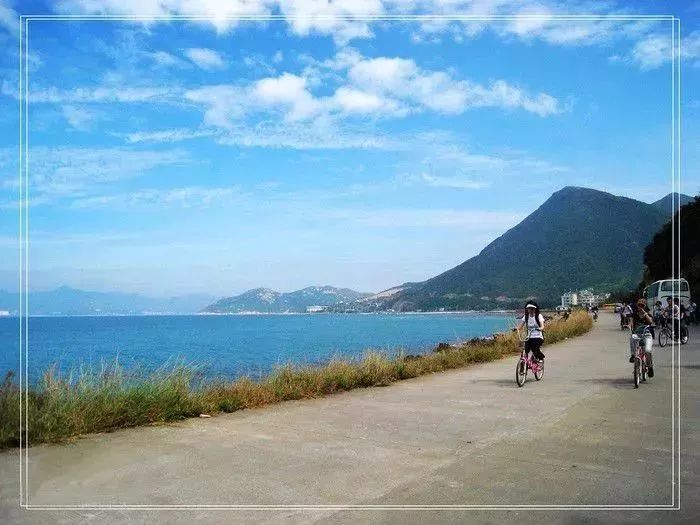 它还有得天独厚的条件,平坦近海的沿海公路为自行车骑行创造了绝佳条件,最浪漫的莫过于挑一辆双人自行车,男生带着女生慢慢骑行在杨梅坑的蓝天碧海中,迎风听海,看浪花朵朵。