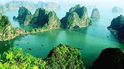 早餐于酒店内享用。乘越南特色红木游船,倘佯于万顷碧波之中;漫游被国际教科文组织评为世界自然遗产之一的【“海上桂林”—下龙湾】(游览时间约4小时)在1500多平方公里的海面上、耸立着3600多座大小不一、千姿百态的喀斯特地貌的山石、更以其“海美、山幽、洞奇”三绝而享誉天下;【斗鸡岛】、【狼狗石】、【香炉山】、【天宫洞】等、数不胜数的风景尽收眼底、下龙湾亦有小渔船如影相随,可向渔民就地购买些许刚打捞而起的各种鱼、虾、蟹等美味海鲜,让游船厨工加工烹饪。11:30分左右于游船上享用中餐,把酒临风,去国怀乡之忧荡然无存,在天海一色中的游船上大快朵颐的美妙感觉在您的全身悄悄蔓延。告别上帝赐于越南最好的礼物---【下龙湾】 乘车前往越南首都【河内】(约3小时车程), 晚餐后入住酒店(备注:(因越南首都河内交通管制,每天晚上20:30之前不允许进城)