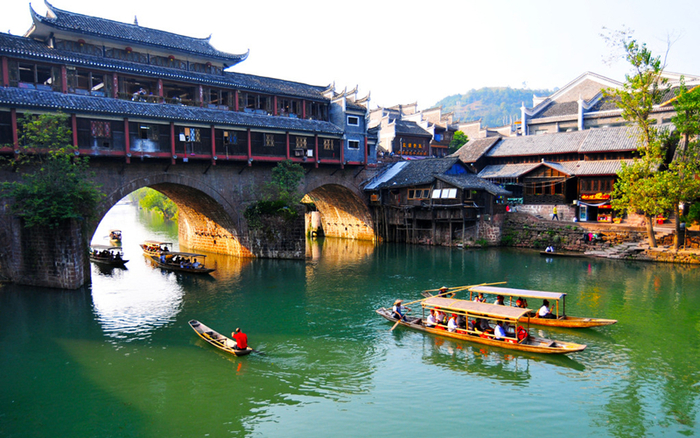 一座青山抱古城,一湾沱水绕城过,一条红红石板街,一排小巧吊脚楼,一道风雨古城墙,一座沧桑老城堡,一个奇绝奇梁洞,一座雄伟古石桥,一群闻名世界的人……一切,都美到极致,因此,才有了沈从文一曲《边城》,将他魂梦牵系的故土描绘得如诗如画、如梦如歌、荡气回肠。