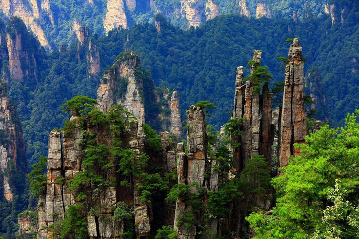【张家界简介】中国旅游胜地四十家之一,风景区面积369平方公里,由张家界国家森林公园、索溪峪自然保护区,天子山自然保护区和杨家界景区四大部分组成。共有30多条 游览线。精华游览线有黄石寨、金鞭溪、天子山、黄龙洞、宝峰湖等五条。被国内外游客誉为“人间仙境,世外桃源”、“天下第一奇山” 、“山的代表、山的典型、山的精灵”、“扩大的盆景,缩小的仙境”、“中国山水画的原本”。景区内三千座岩峰热拨地而起,耸立在原始旷野之上,八百条溪流 蜿蜒曲折,穿行于莽荡峡谷之中,可谓融、林、洞、湖、瀑布于一身,集奇、秀、幽、野、险于一体,“五步一个景,十步一重天”。