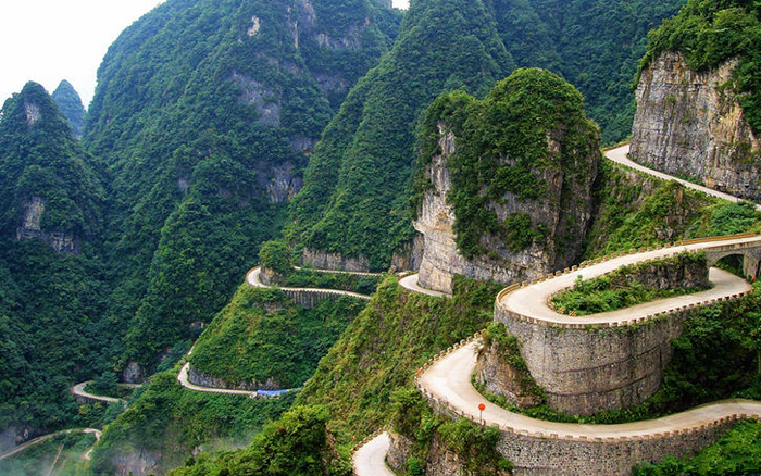 天门山距张家界市区仅8公里 ,海拔1518.6米 ,山体四周绝壁,拔地临空,气势冲天,发育着成熟的喀斯特岩溶地貌。于高绝奇险中更见秀丽宜人,历来成为名人宦仕的景仰之地,文化底蕴极为深厚,是张家界的文化圣地,被尊为“张家界之魂”,有“湘西第一神山”的美誉。拔地擎天的天门山,山势陡险峻拔,被称为张家界的天然画屏。天门山因自然奇观天门洞而得名,天门洞终年氤氲蒸腾,景象变幻莫测,时有团团云雾自洞中吐纳翻涌,时有道道霞光透洞而出,宛如幻境。