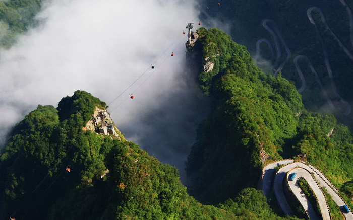 起床后(因景区需要赶早排队,无法在正常时间用餐后去游览,故需提前自备),乘车前往游览被誉为世界最美的空中花园和天界仙境的张家界第二个国家森林公园-【天门山国家森林公园】。天门山因自然奇观天门洞而得名,是张家界最早载入史册的名山.神秘玄奇的天门山囊括了世界四最两迷(四最:1、世界最长的【高山索道】(单程30分钟),2、世界绝无仅有的公路奇观-【通天大道】,3、世界海拔最高的天然穿山溶洞--【天门洞】4、世界上最高的【空中原始花园】;两迷:"天门翻水"和"天门转向"】)。坐高山观光索道览99弯公路奇观、走惊险刺激玻璃栈道,给您带来充满震撼的旅游体念。(扶梯32元/人、山顶小索道单程25元/人、玻璃栈道鞋套5元/人自愿选择,另行付费)。