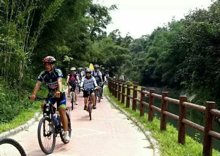 一江碧水,两岸青. 流溪河水上绿道游船---广东首条水上绿道.两岸奇特的地貌、四季常青、风景如画!在这绿色通道上客人乘坐着艳红的古船,滑行在油画般的碧绿江面上。呼吸着带有负离子的氧气,享受着纯天然风光氧吧。流溪河低碳单车绿道上的自由娉驰打破传统,娉驰着单车沿着流溪河去饱览整个岭南风景特色的缩写.在低碳单车绿道上,你可以和朋友一边畅谈一边观赏淳朴的乡间和知秋的山间美景.累了可以停到驿站内!