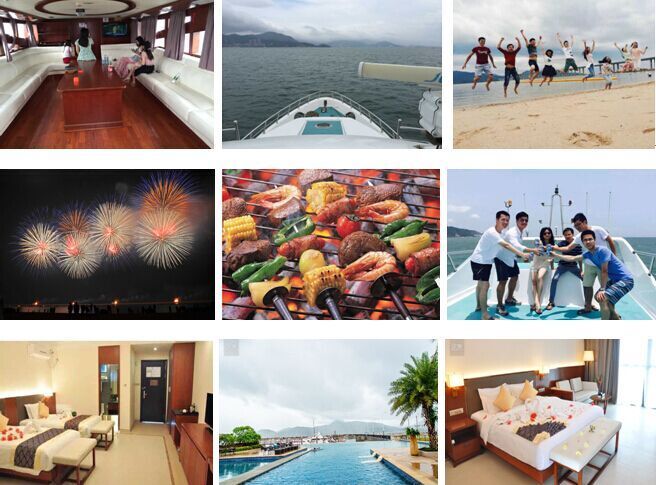 13:00 乘坐豪华游轮出海(约1.5 小时左右)(船上卡拉OK,观景台、迪斯高及近万首触摸点歌)近眺海岛,