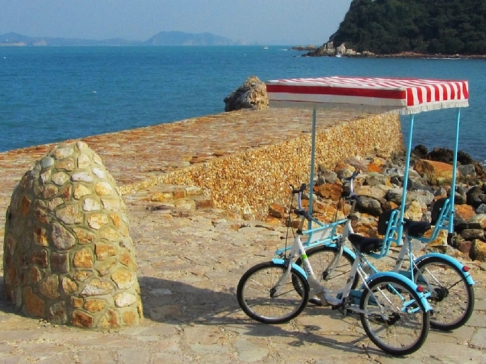 14:30到达杨梅坑,挑选自己喜欢的自行车,单人的双人的,三轮的四轮的,一应俱全。带着甜蜜,浪漫前行。登上鹿嘴山庄,还可欣赏无敌海景哦。