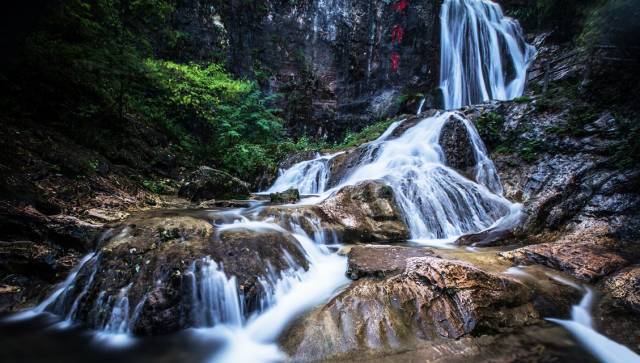 泄愤崖瀑布是景区内最大的瀑布,达百米以上,有三级所构成,水势分飞、急、慢。