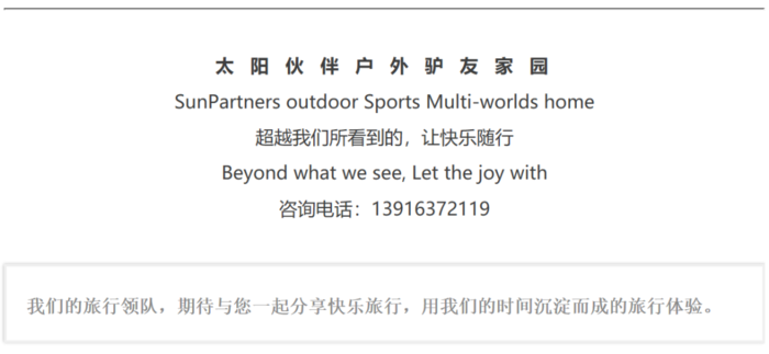 报名方式 网上统一报名,或电话微信报名:13916372119,并留下联系电话,提供身份证信息方便统一购买户外自助游保险,并交活动定金确认报名参加。平台提供装备出售、租、转,考虑到个人卫生睡袋自己买(提前和领队沟通)