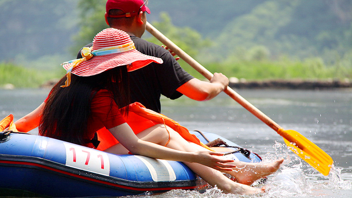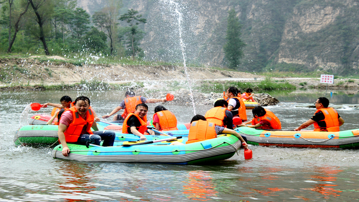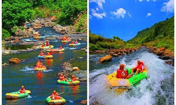 漂流为游人提供了一个尽情打水仗的好机会。剩着皮筏,顺流而下,静可悠然赏景,动可感受激流的惊险刺激,更可痛快打水仗,来个泼水节。
