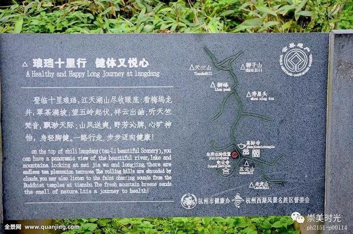 郎当岭,又名琅珰岭,古名扪壁岭。原指天竺山东,龙井村西,梅家坞村东北的山岭。习惯上把南起五云山,北至天竺一带山岗通称“郎当岭”。因山岗蜿蜒约数公里,又有“十里郎当”之称,即“十里琅珰”。郎当岭景区地质地貌以石灰岩为主,自然形成了峰峦叠秀,千姿百态的山林景观,是西湖群山中最高、最长的山岭,平均海拔在200米以上,视野开阔,澄静明秀。是深受杭州市民游客喜爱的西湖山林旅游胜地之一。现古道仍保持着原有路径走向和传统的地面铺装。