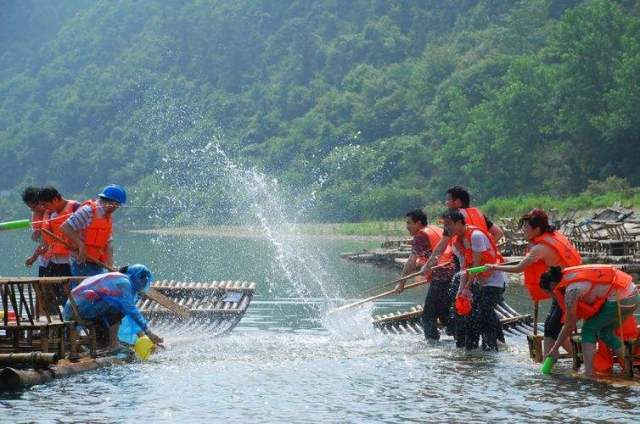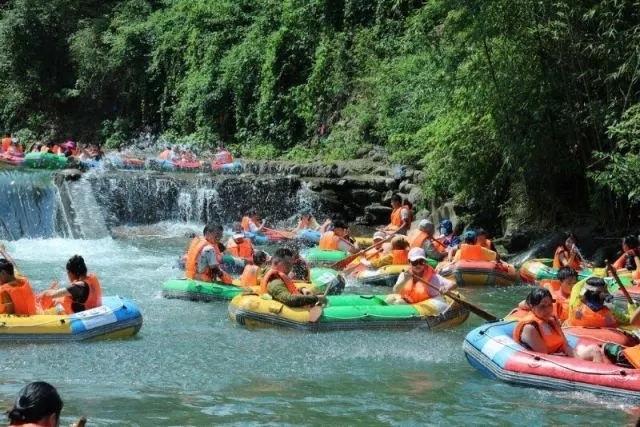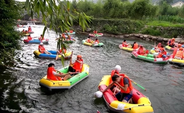 天目源漂流全程2公里,自然落差接近50米。乘坐自划皮艇顺流而下,既有惊险刺激,又有野趣闲趣