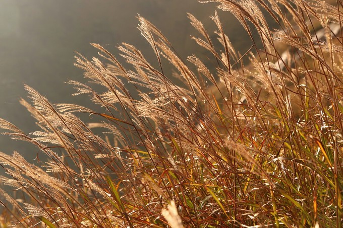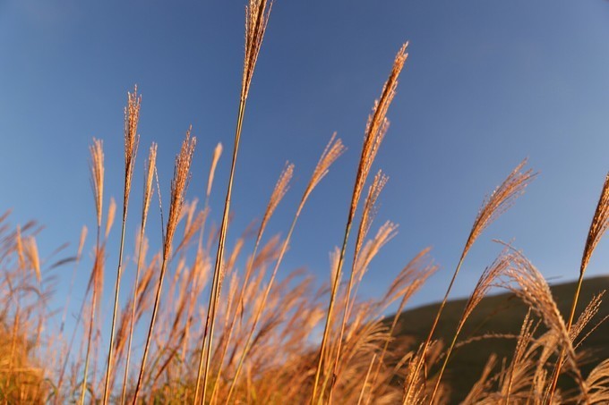 一阵风起,这芦花的海洋便翻滚起金色的波浪,一浪推着又一浪。我们沉醉在这金色的浪潮中。蓝天下的武功山,好似一条条流动的金色草链,印在我们的眼帘。