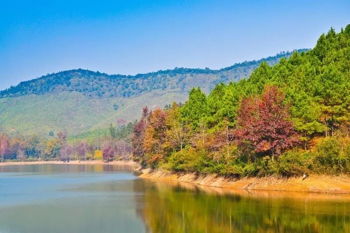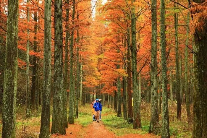 上午 约1小时到达大禹谷,此路线沿途火红水杉,金色稻田,洋溢着乡村田园的浪漫风情。沿着乡村小道,走到甘岭湖大坝上,豁然开朗,平湖秋色,波光粼粼。湖边红叶倒影,远处娘娘山矗立,景色极佳!午餐路餐,自带午餐,在这么美的风景里吃,东西也会觉得更美味吧~
