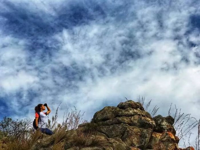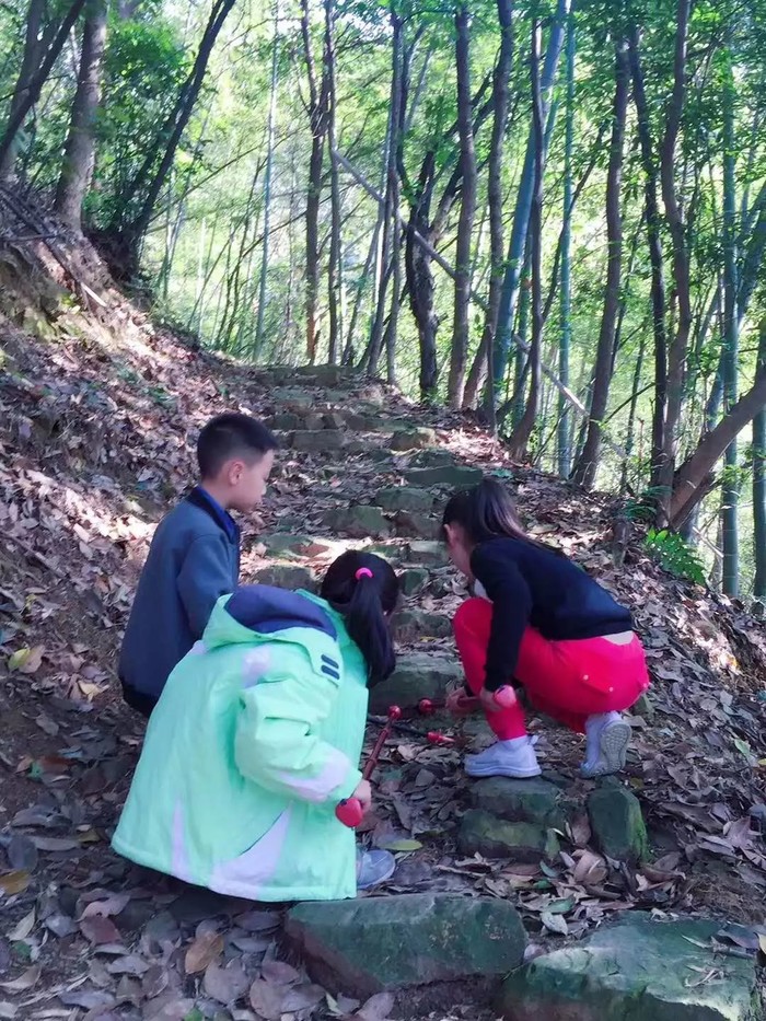 8、出门登山集体活动,需要小伙伴能够自助、互助,所以当遇到岔路没有明显标识的时候,同行的小伙伴请伸出援助之手留个记号给后面的队员哦,告诉后面的:我们在这里,我们在这里,我们在这里。