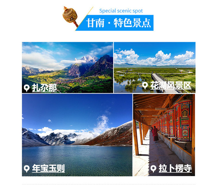 【游览】郎木寺首道门票、扎尕那首道门票、花湖首道门票及区间车、黄河九曲第一湾首道门票、拉卜楞寺首道门票、尕海首道门票。