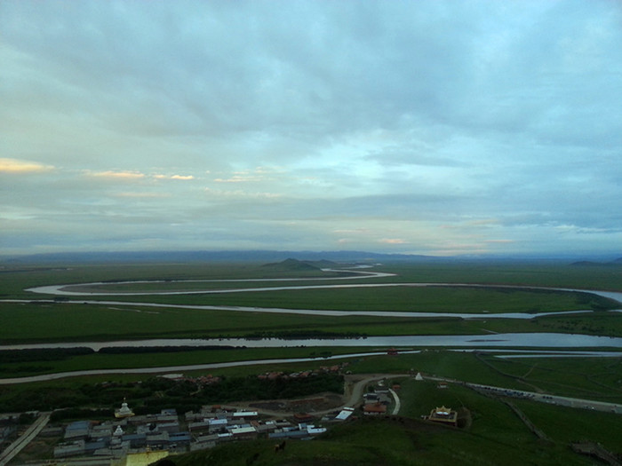 10:30 乘车赴唐克乡的黄河九曲第一湾,沿途欣赏美丽的热尔大草原。