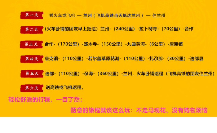 - 第2天兰州-(240公里)拉卜楞寺-( 70 公里)合作