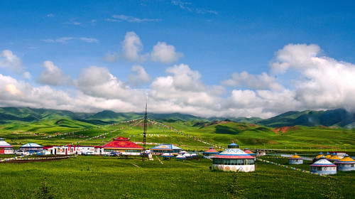 7:00早餐后,乘车沿国道213,前往郎木寺(约2.5小时车程)。此时沿途可欣赏到优美的甘南大草原。