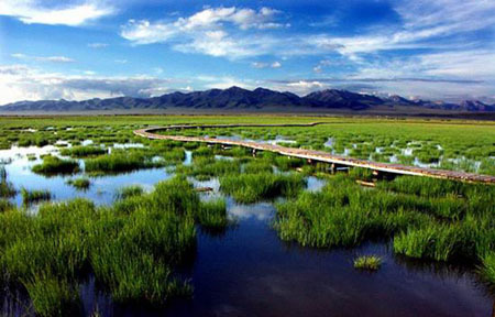 主要分布在玛曲、夏河、碌曲三县。是黄河首曲最大的一块生态湿地,也是河曲马、黑颈鹤、白天鹅、藏原羚鹤梅花鹿栖息的乐土;在辽阔的草原上,牛羊点点,帐篷星罗棋布,帐篷上炊烟袅袅,马背上牧歌飘荡。