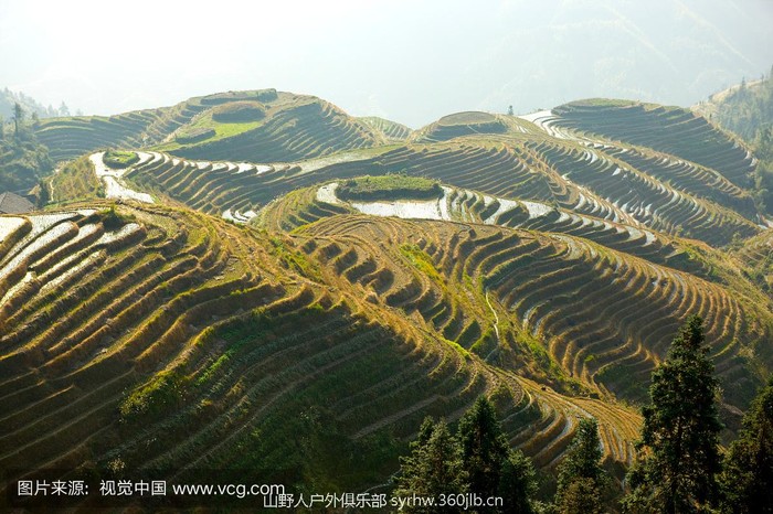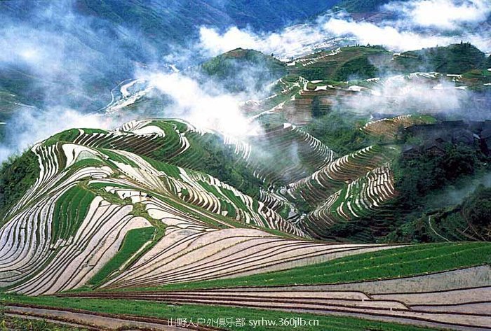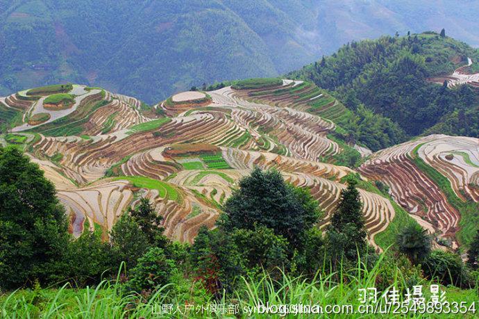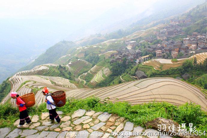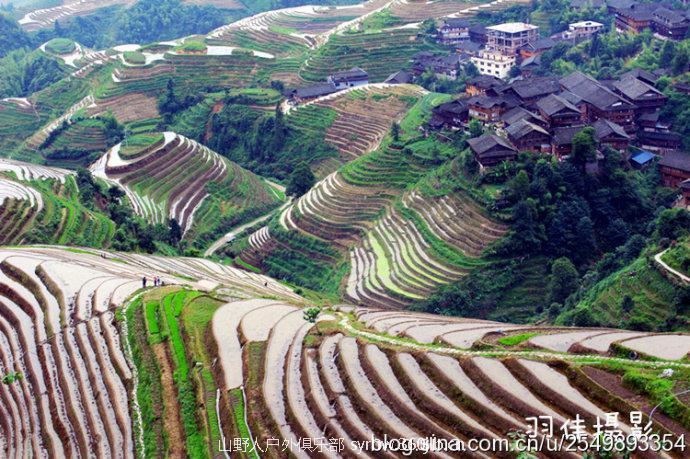 龙脊梯田景区内居住着壮族、瑶族两种民族,以壮族为主,龙脊的壮族是北壮的代表,服饰独特,风情独具,在这里你可以看到古朴的壮族民间舞蹈和保护完美的壮族服饰,可听到优美的壮族山歌,享受原汁原味的壮族风情,传统习俗壮乡民居,香纯味美的龙脊铜鼓舞,师公舞,打扁担令人耳目一新,此外,还有古朴的壮乡民居,香纯味美的龙脊茶和龙脊辣椒,沁人心肺的“东方魔水”——龙脊水酒。 龙脊梯田只是一个景区统称,包含龙脊寨(壮族)、平安寨(壮族)、中六寨(瑶族)、大寨(瑶族)、田头寨(瑶族)、小寨(瑶族)等若干村寨。就梯田本身而言,最壮观的是大寨的金坑梯田和附近的小寨梯田。央视12台的片头以及大家经常看见的龙脊梯田宣传图片和影视作品绝大部分都是出自金坑梯田。平安寨的七星伴月也非常不错,就是通常大家以前说的龙脊梯田了。龙脊梯田常规来说有3个入口,一个是平安村,一个是大寨村,还有一个是龙脊村(龙脊古壮寨)。