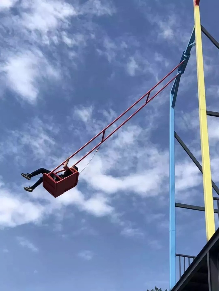 浙江第一个悬崖秋千,近百米的悬崖边。坐在秋千座椅上,当座椅被拉到与秋千架几乎垂直的高度时忽然放开,猛然向悬崖外冲去,刺激程度五颗星,直逼过山车和蹦极!!!