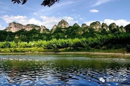 穿岩十九峰,位于浙江新昌城关西南约22公里处的镜岭镇境内一脉秀峰平地而起,连绵数十里,幻化成十九座姿态各异、燕瘦环肥的山峰一字排开,鱼贯列队,比肩依偎,风姿绰约。山脚一湾碧水环绕,岸边翠竹依依,芦苇结荡,野鸭嬉戏。“穿岩之岩高苍苍,峰峦十九摩天光。”十九座山峰都有自己的名字,即鹅鼻、缆船、狮子、阳岫、泗洲、文殊、普贤、幞头、蒸饼、香炉、笔架、望海、覆钟、卓剑、棋盘、新妇、摆旗、磬、马鞍等峰峰相连,横亘五公里。其中最高的山峰为望海峰,最为险峻的是缆船峰,最为宏伟壮观的是马鞍峰。