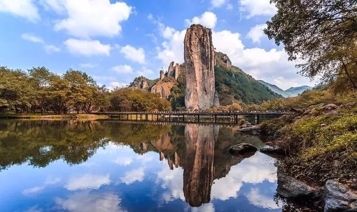 朱潭山位于仙都景区,主要景点有仙堤、晦翁阁、九龙壁、超然亭。进入景点位于两桥之间的长堤,叫做仙堤。仙堤两边杨柳婆娑,用卵石铺成的长堤既浪漫又多情,是欣赏鼎湖峰的位置最佳。