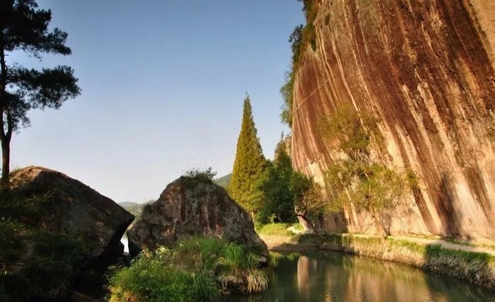 指定地点出发至丽水; 游览远远望去,“犹如焰火烧过,和长江赤壁相似”—【小赤壁】(约1小时);临溪一面绝壁陡峭,红白相间,犹如焰火烧过,故称小赤壁。西边山巅有形态酷肖的婆媳岩、“舅轿岩”相对。内有龙耕路、大肚岩、小蓬莱、仙榜岩、八仙亭、云关、丹室等自然景观,错落有致,山水相融,构成了一幅风光旖旎的画卷……继游览【朱潭山】(约1小时),主要景点有仙堤、晦翁阁、九龙壁、超然亭。