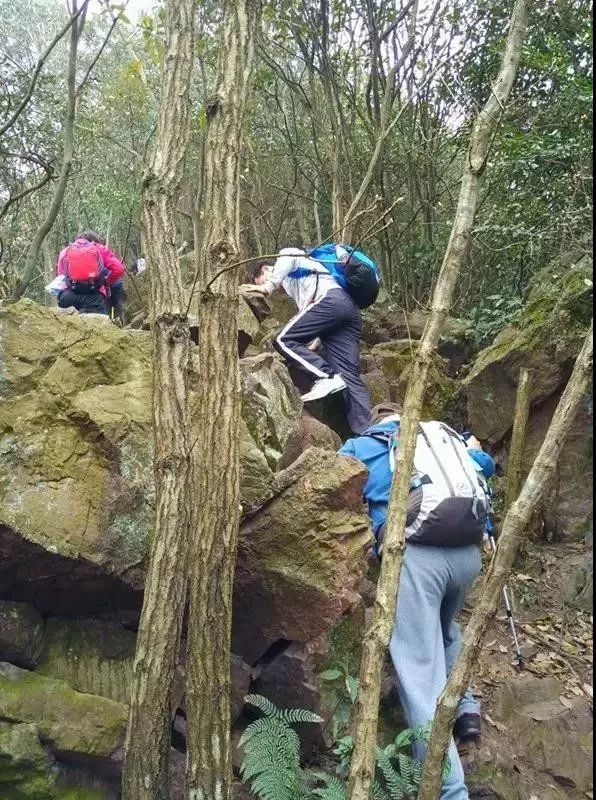 8、出门登山集体活动,需要小伙伴能够自助、互助,所以当遇到岔路没有明显标识的时候,同行的小伙伴请伸出援助之手留个记号给后面的队员哦,告诉后面的:我们在这里,我们在这里,我们在这里。