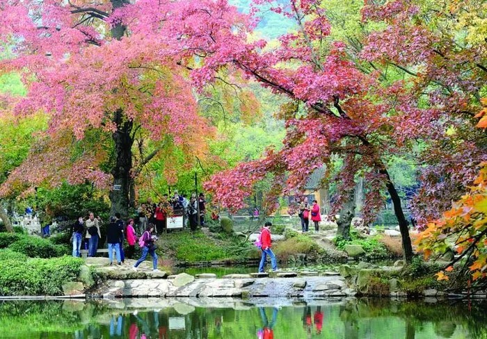 约2个小时左右到达木渎古镇,自由游玩,中餐后适时前往天平山,正值江南的深秋,天平山的秋色正是浪漫无忌之时。天平山泉水质地绝佳,山前有大片枫林,为明代范允临(范仲淹后裔)从福建带回种植于此,已有400多年历史。每当秋末冬初,层林尽染,有“红霞万丈”之称,“天平观枫”也由此名传四方。我们除了赏红叶,还可访古寻胜,入山门有乾隆皇帝御赐“高义园”牌坊、接驾亭、古景塘西侧古枫林中有御碑亭、范文正公忠烈庙诸胜。