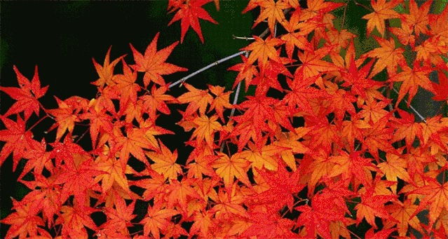 入秋后,枫叶由青次第变为黄、橙、红、紫,称五彩枫,亦有呈浅绛、金黄、桔黄、橙红等色。纵目眺望,似珊瑚灼海,红霞万丈。