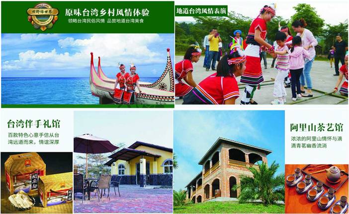 置身田野绿世界,可以领略台湾民俗风情,品尝地道台湾美食。文化表演区每天上演台湾民族风情表演:动感可爱的电音三太子、清纯如水的高山族姑娘、狂野如火的少数民族汉子等热情奔放的节目轮番登场表演、与游客互动,把您带进一片欢乐的海洋!
